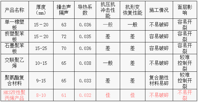 HKS改性聚丙烯保溫隔聲板與其他產(chǎn)品性能對(duì)比